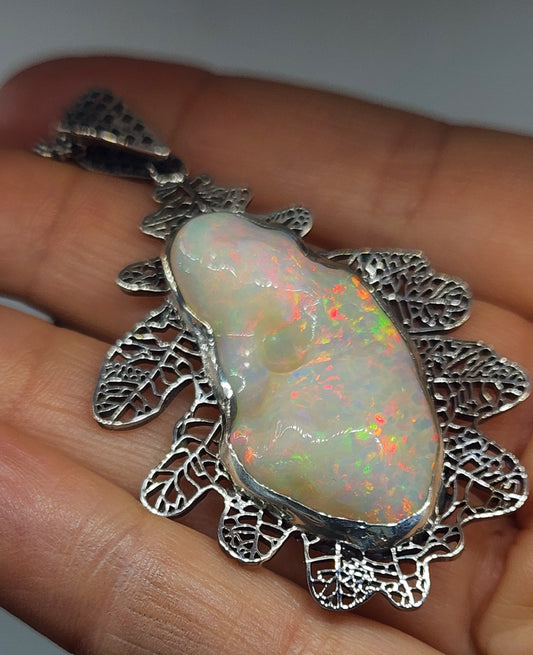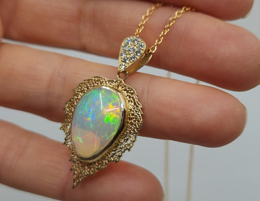 Natural Opal Leaf Pendant 14k Gold Necklace #476