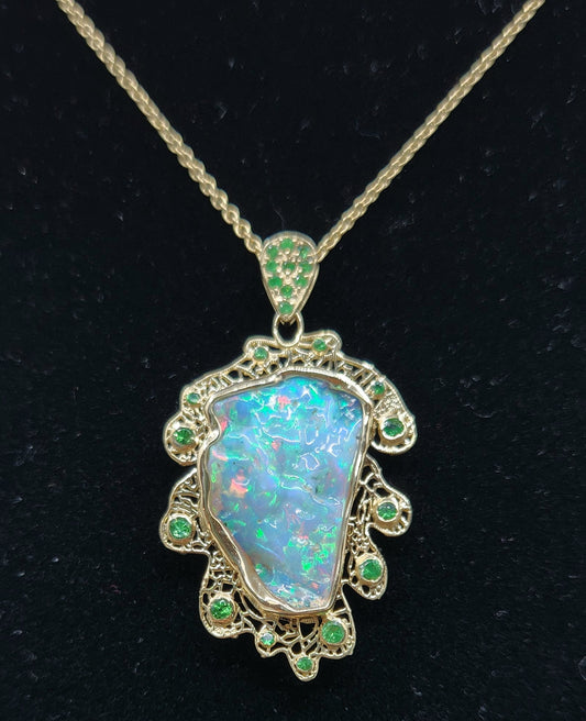 Opal Pendant 14k Yellow Gold Split Chain Necklace #471