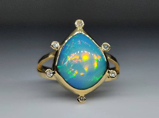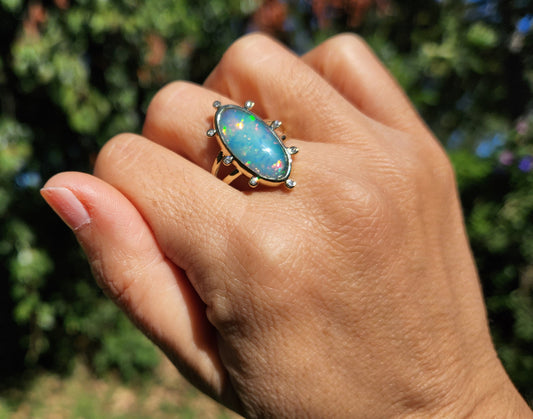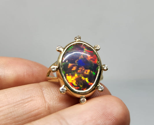 Custom Order For C.P Opal & Diamond 14k Gold Ring #423