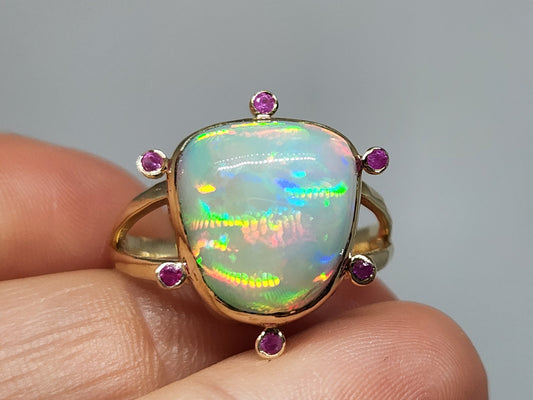 Sold outOpal & Sapphires 14k Gold Ring #424