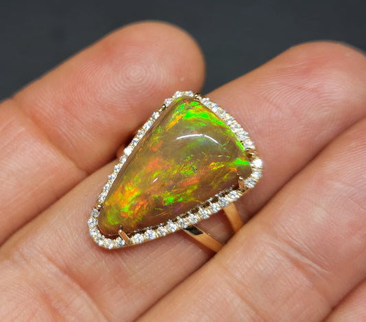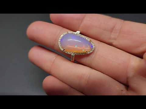 Opal & Diamond Pendant 14k Gold Necklace #363