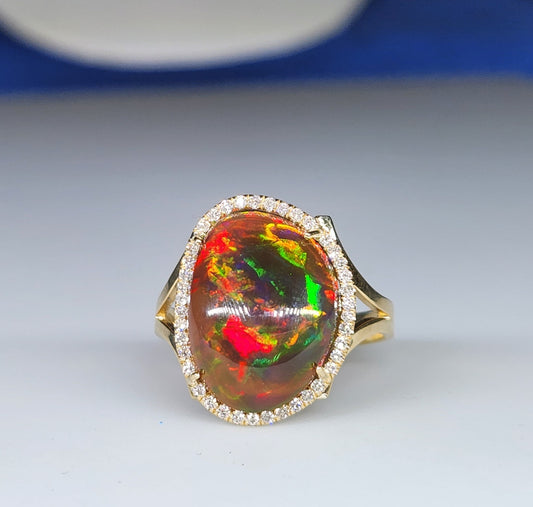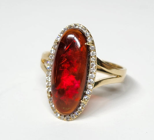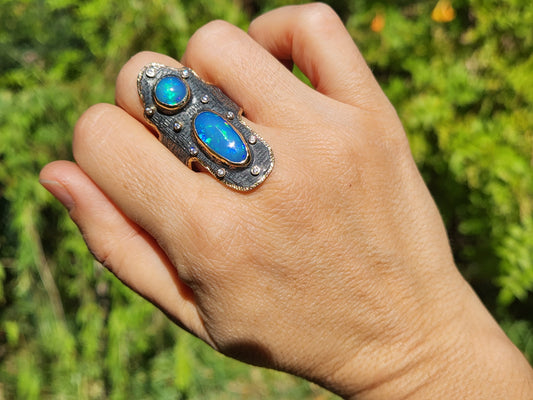 Rustic Opal & Moissanite Ring - 14k Gold & Sterling Silver #360