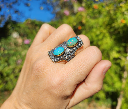 Rustic Opal & Moissanite Ring - 14k Gold & Sterling Silver #359