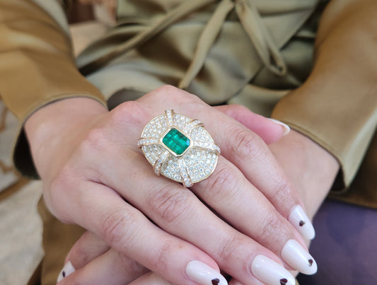 Emerald & Diamond Ring - 14k Gold Gemstone Jewelry #364