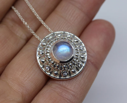 Moonstone Medallion Pendant - Sterling Silver - #310