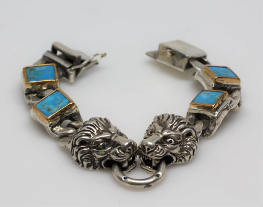 Men's Turquoise Sterling Silver Lion Link Bracelet #312