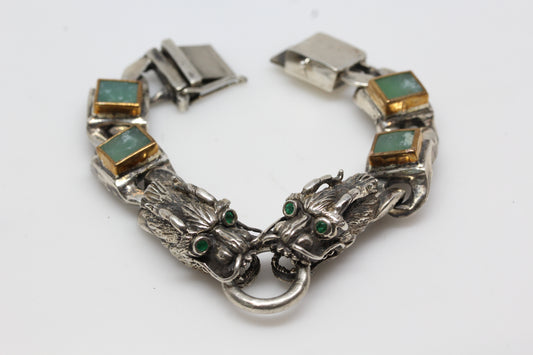 Men's Opal Sterling Silver Dragon Link Bracelet #313