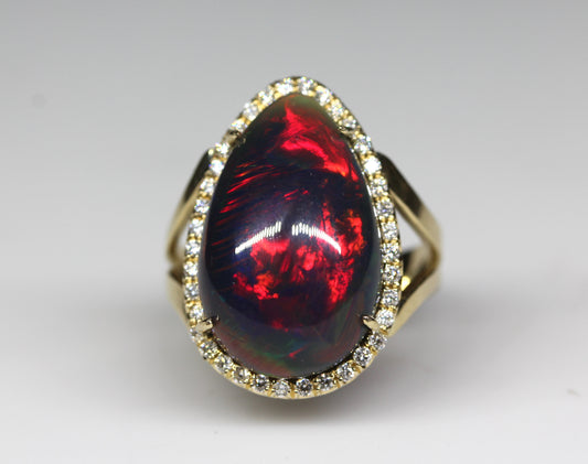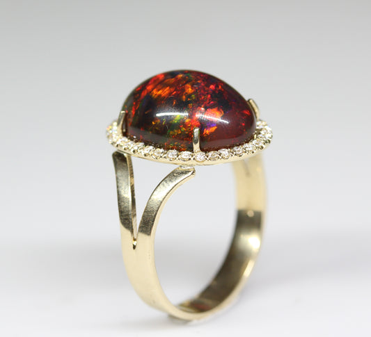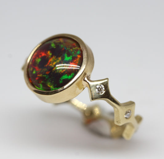 Black Opal & Diamond Ring 14k Gold #317