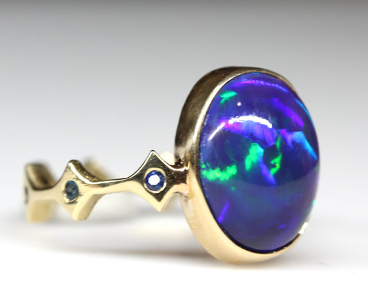 Black Opal 14k Gold Ring - Handmade Jewelry #318