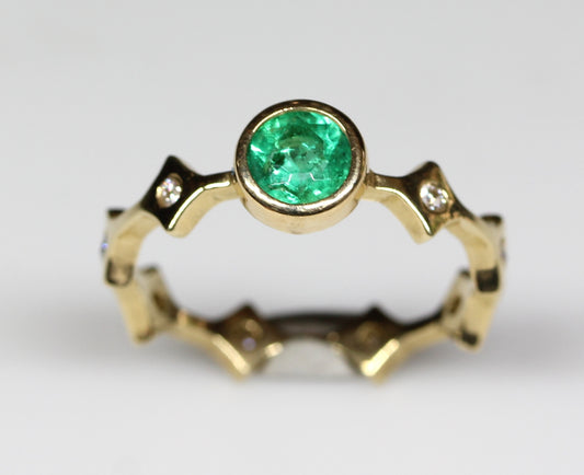Emerald Stacking Ring 14k Yellow Gold - Handmade Jewelry #320