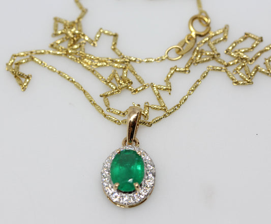 14k Yellow Gold Emerald & Diamond Pendant #324