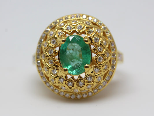 14k Yellow Gold Emerald & Moissanite Ring #325
