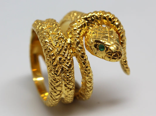 Snake Ring with Emerald Eyes 24k Yellow Gold Vermeil #327