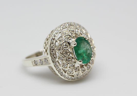 Sterling Silver Emerald & Moissanite Ring #326