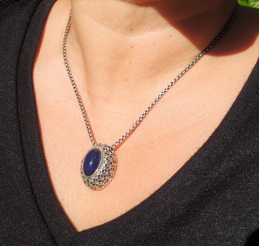 Black Opal & Spinel Pendant Sterling SilverChain Necklace #254
