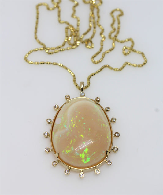 Jelly Opal & Diamond Pendant 14k Yellow Gold Gemstone Necklace #244