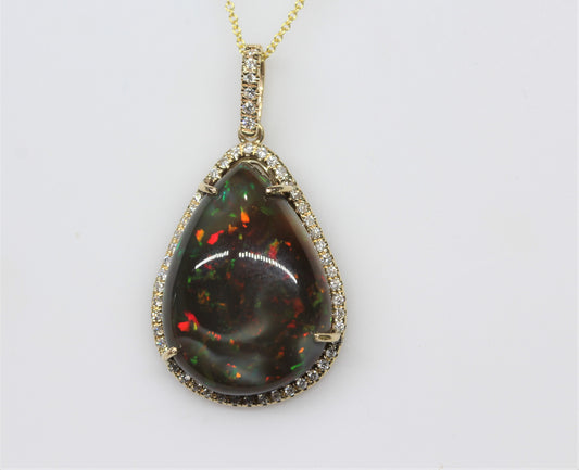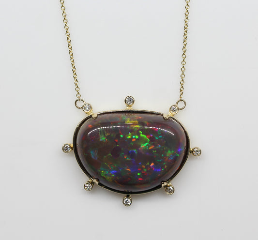 Black Opal & Diamond Pendant 14k Yellow Gold Gemstone Necklace #245