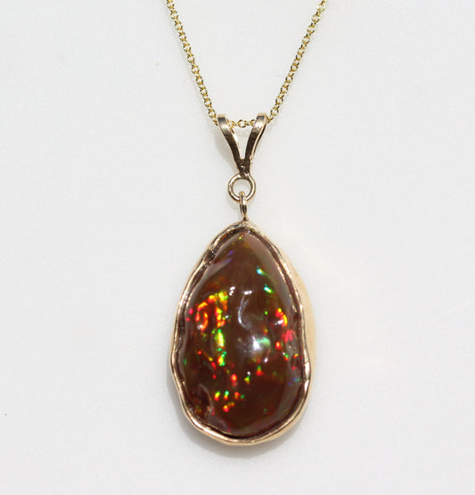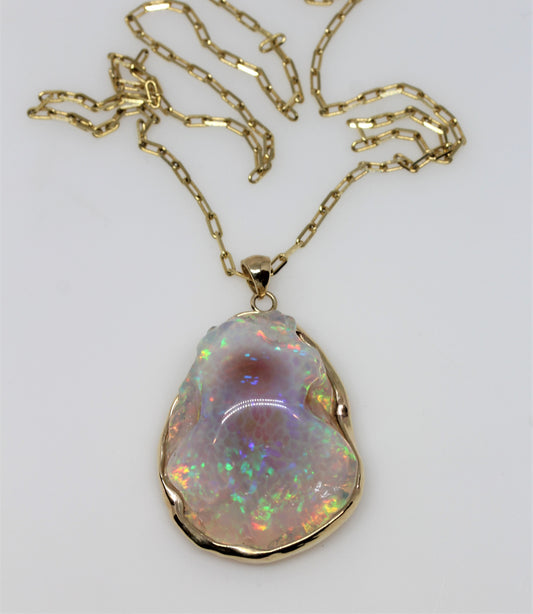 Large Colorful Carved Opal 14k Gold Pendant #250