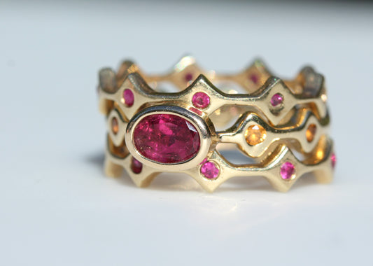 Made To Order - Pink Tourmaline & Sapphire Three Stacking Ring Set 14k Gold