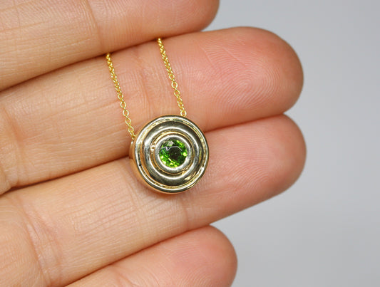 Chrome Diopside Pendant 14k Yellow Gold Green Gemstone Necklace #261