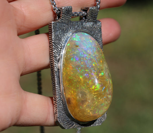 Yellow Opal Specimen Pendant Rustic Sterling Silver Watch Video #255