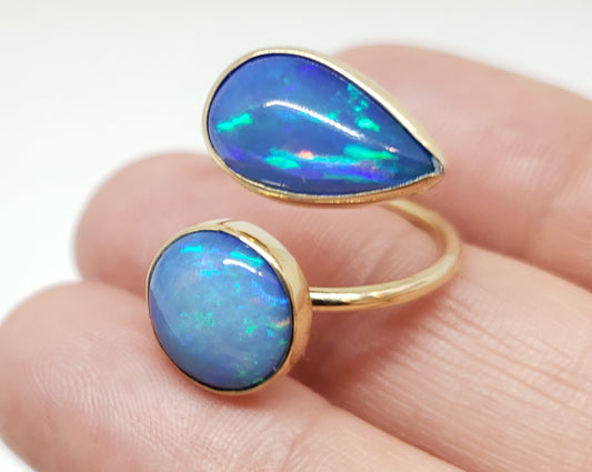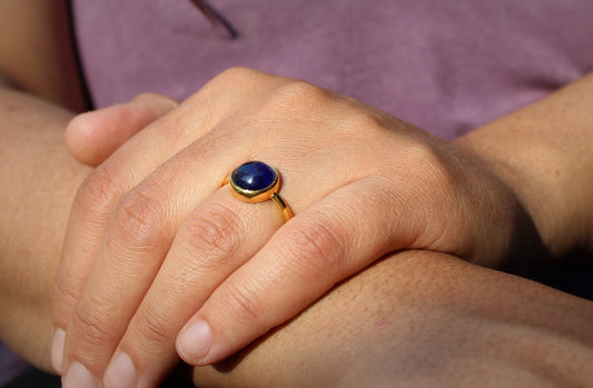 Blue Lapis Lazuli Ring - 24k Gold Plated - Adjustable Size - Joy#174
