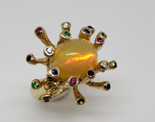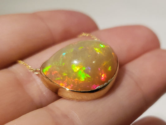 Orange Opal Pendant 14k Yellow Gold Chain Necklace #164