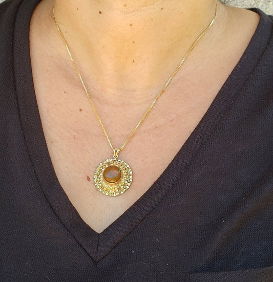 Brown Opal & Green Tsavorite Pendant 14k Gold #163
