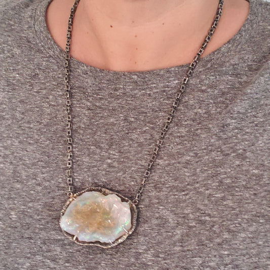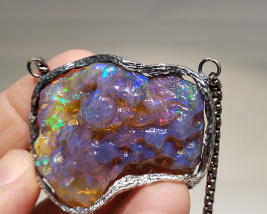 Rustic Silver Opal Specimen Pendant Sterling Silver #171