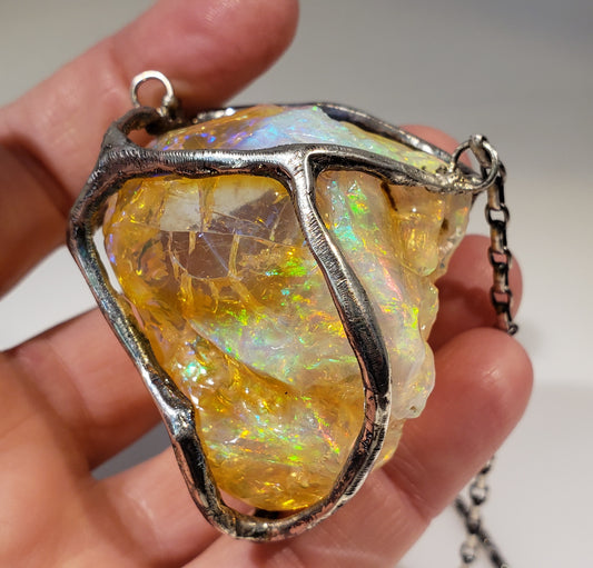Yellow Opal Specimen Pendant Sterling Silver #168