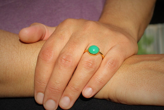 Green Chrysoprase Ring - 24k Gold Plated - Adjustable Size - Joy#173