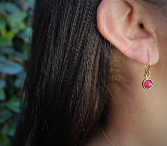 Round Ruby Dangle Earrings- 24k Gold Plated - Joy#175