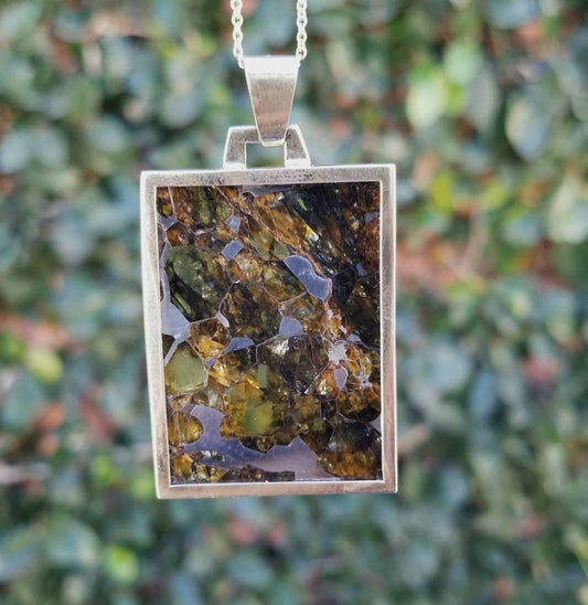 Pallasite Meteorite Pendant 14k Gold -Russian Meteorite Necklace
