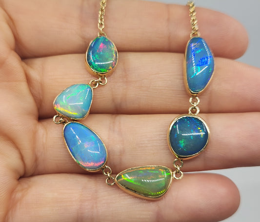 Ethiopian Opals Gemstone Link Bracelet 14k Gold Jewelry #526