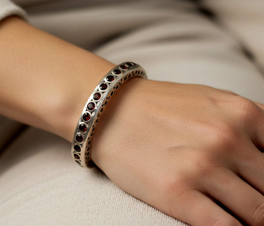 Rustic Sterling Silver Red Garnet Gemstone Cuff Bracelet #604