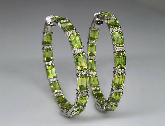 Green Peridot Gemstone Hoop Earrings Sterling Silver #430