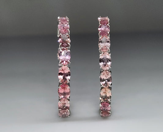 Pink Tourmaline Gemstone Hoop Earrings Sterling Silver #431