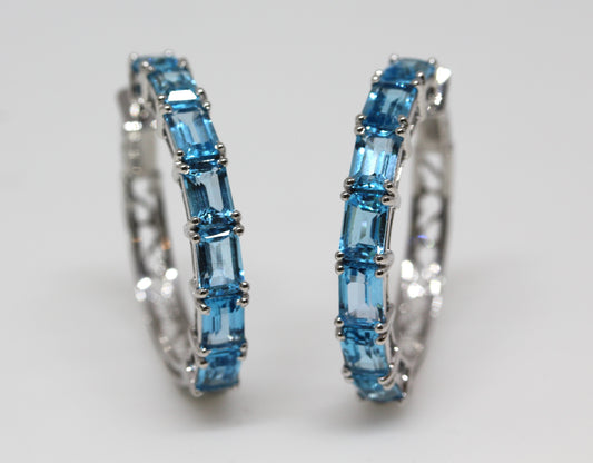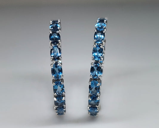 Blue Topaz Gemstone Hoop Earrings Sterling Silver #432