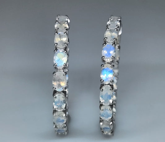 Moonstone Gemstone Hoop Earrings Sterling Silver #433