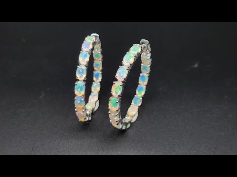 Opal Gemstone Hoop Earrings Sterling Silver #417