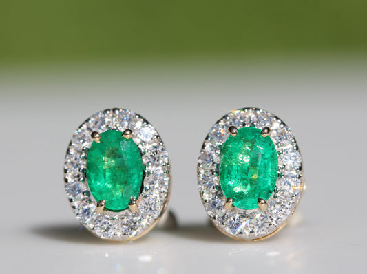 14k Yellow Gold Emerald & Diamond Stud Earrings 6mm #323