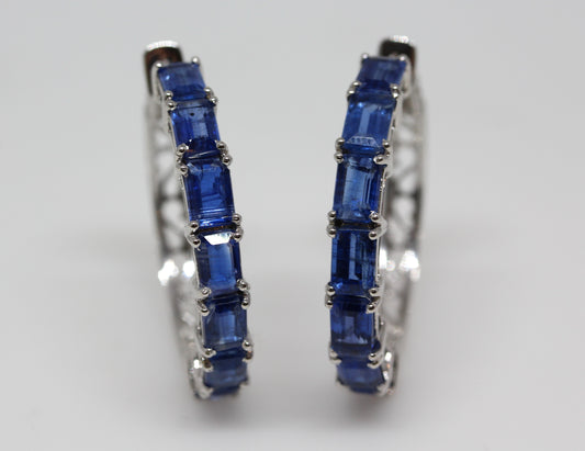Blue Kyanite Gemstone Hoop Earrings Sterling Silver #331