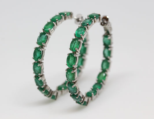 Emerald Gemstone Hoop Earrings Sterling Silver #332