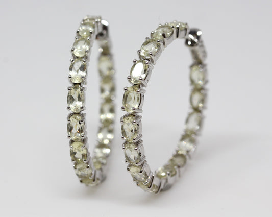 Lemon Quartz Gemstone Hoop Earrings Sterling Silver #335