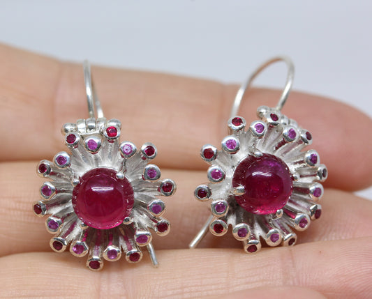 Ruby Round Dangle Earrings - Sterling Silver - #251
