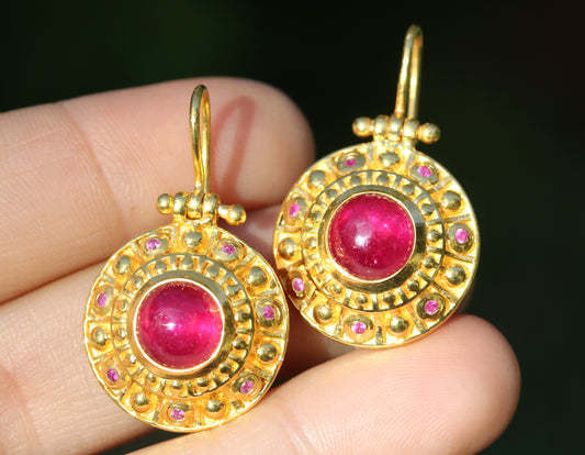 Ruby Round Dangle Earrings - 24k Gold Plated - #265