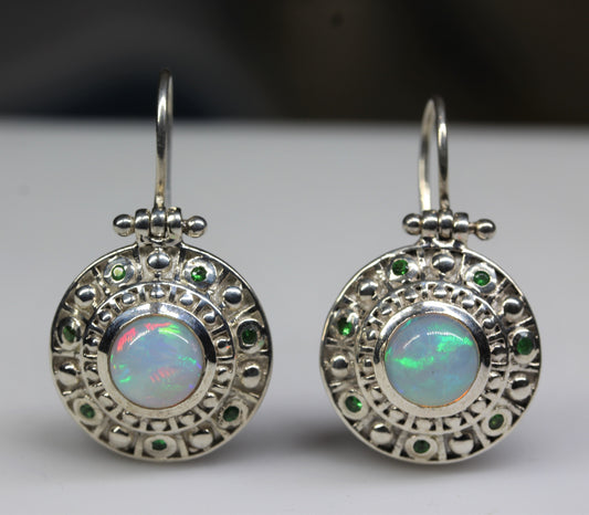 Natural Opal Dangle Earrings - Garnet Accents - Sterling Silver #267
