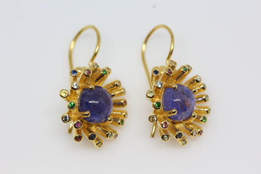 Purple Tanzanite Dangle Earrings 24k Gold Plated Color gemstone Accents #272