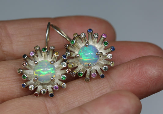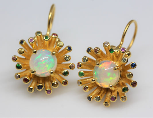 Opal Dangle Earrings 24k Gold Plated Color gemstone Accents #274
