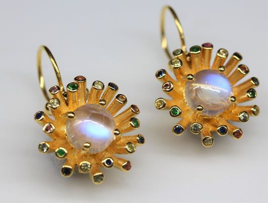 Starburst Moonstone Dangle Earrings 24k Gold Plated Color Gemstone Accents #284